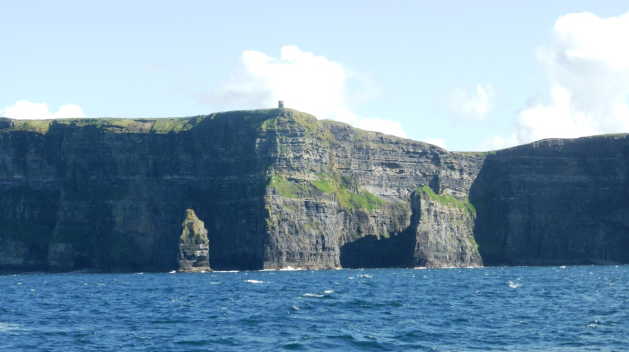 Auf keinen Fall wollten wir auf die Bootsfahrt zu den Cliffs versäumen. So fuhren wir von dem Städtchen Doolin zur Bootsanlegestelle und fuhren trotz sehr bewegten Meeres an die Cliffs heran. Gut, dass der heftige Wellengang den meisten nichts ausmachte.